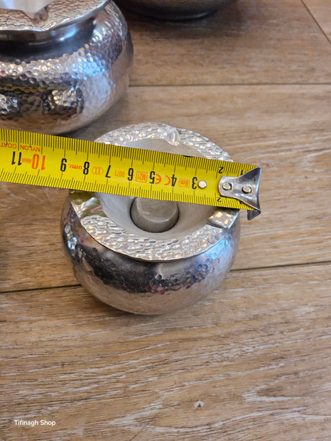 Les cendriers ronds en métal fabriqués au Maroc allient élégance et durabilité. Conçus avec un savoir-faire traditionnel, ils ajoutent une touche d'authenticité et d'élégance à tout espace. Parfaits pour une utilisation en intérieur comme en extérieur, ils sont à la fois pratiques et esthétiques.